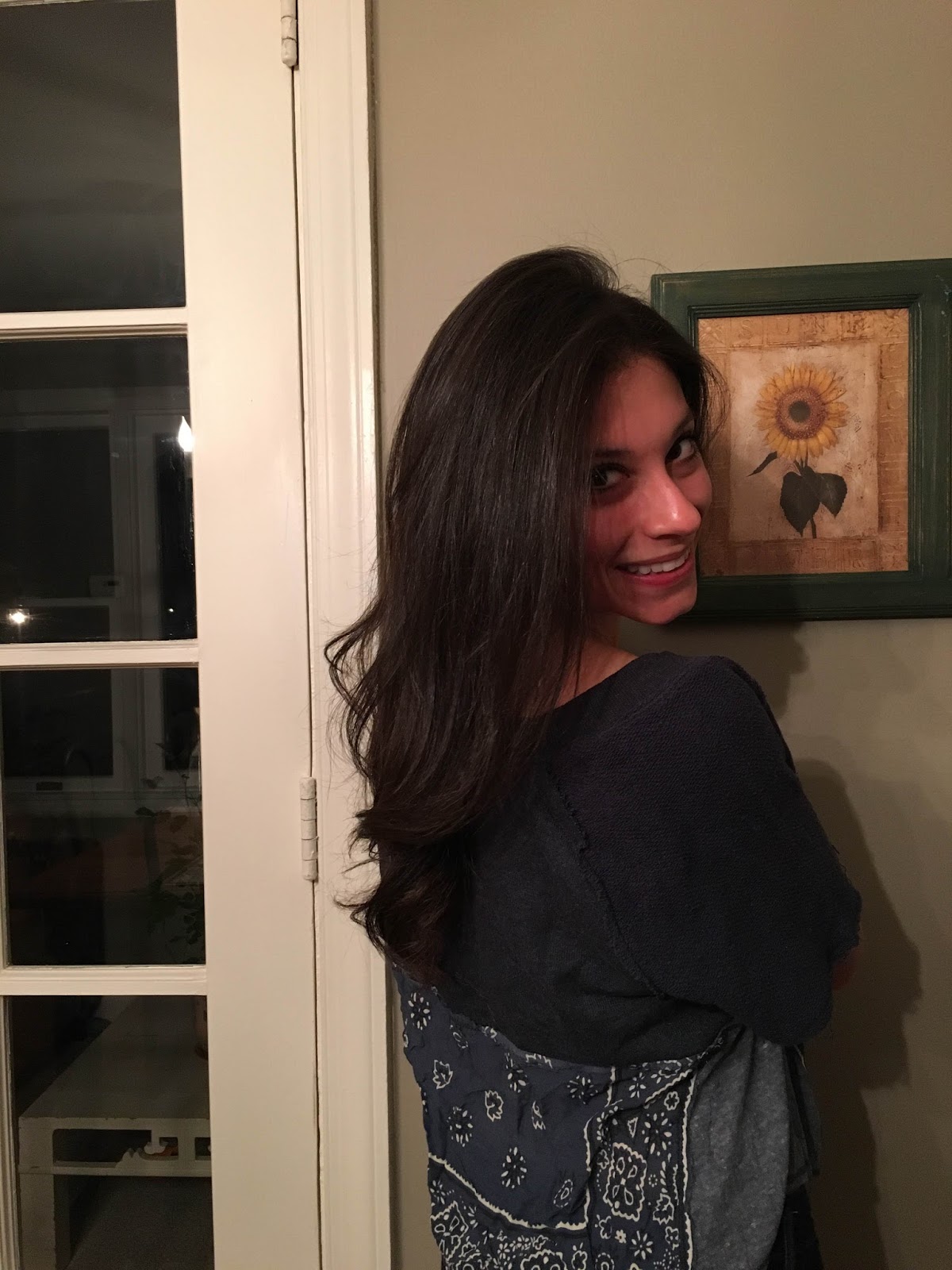 For reference, here is a rando photo of me without the extensions in. Clearly you can see the difference in length, but you can also definitely see how much fuller my ends look with the extensions in compared to my natural locks: Oh hi mom! =P